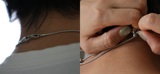 - For shorter lengths: Attach one end to your pendant, clasp the other end near the stainless steel bead, then slide the bead toward both sides to adjust to your desired length.