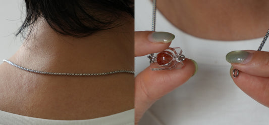- When using the long chain at its full 52cm length, the two adjustment beads double as decorative accents — they slide freely along both sides of the chain, complementing your pendant to create varied looks.