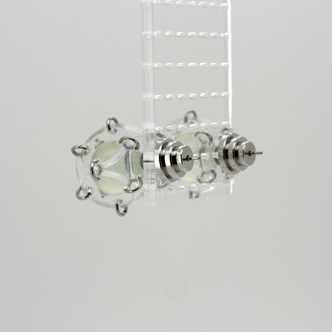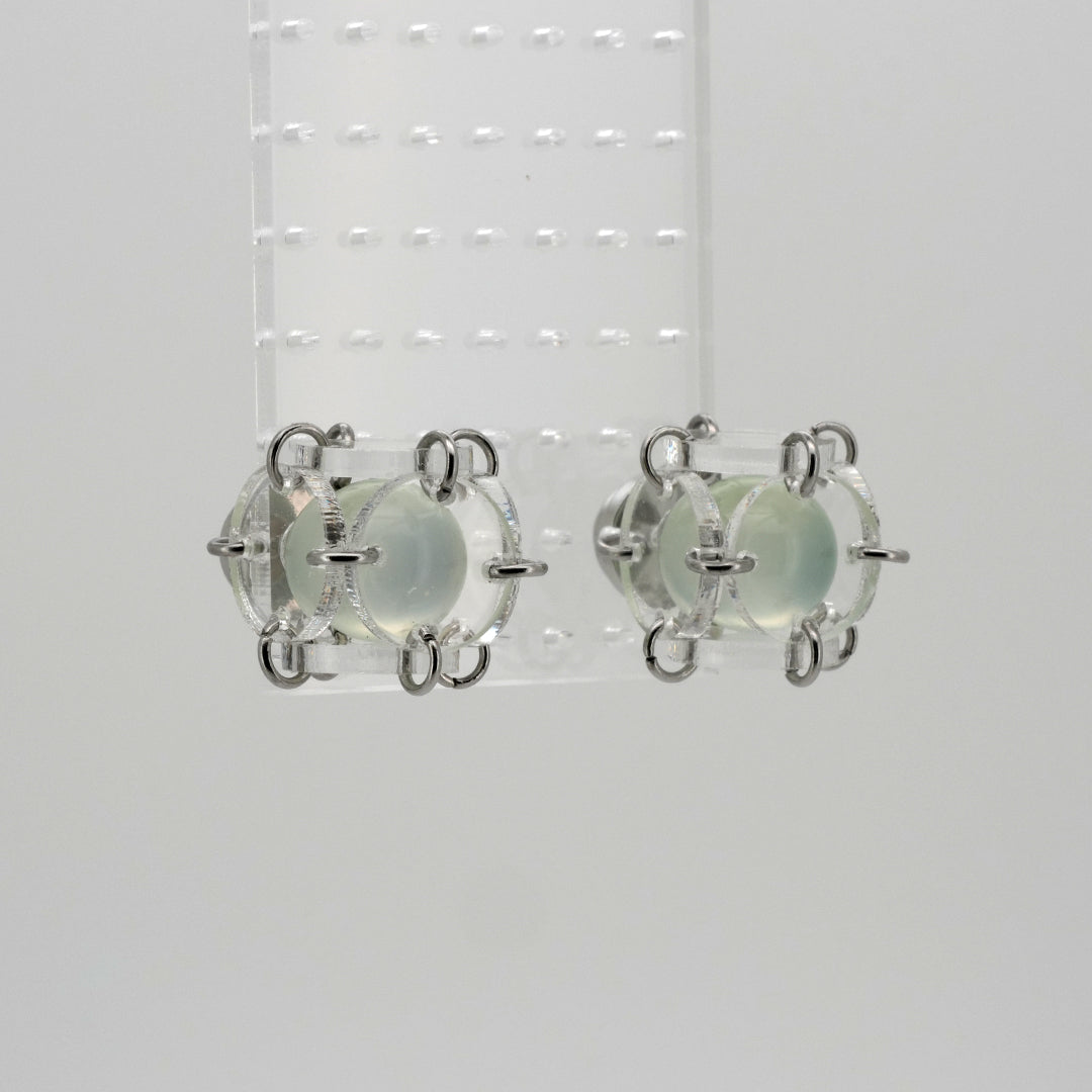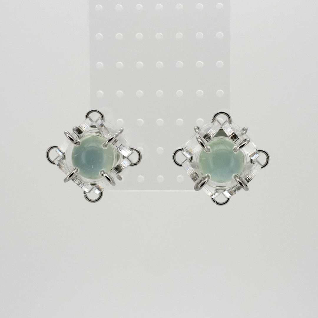 Every prehnite here is a little pearl of fairyland dew, shifting from translucent bright to gentle mint-like the faint glow of dew that kisses a stream's edge, now resting light on your ear. It's a small, wearable piece of the woods' early calm, where dew sits soft on grass blades. Move your head, and the stone glows.