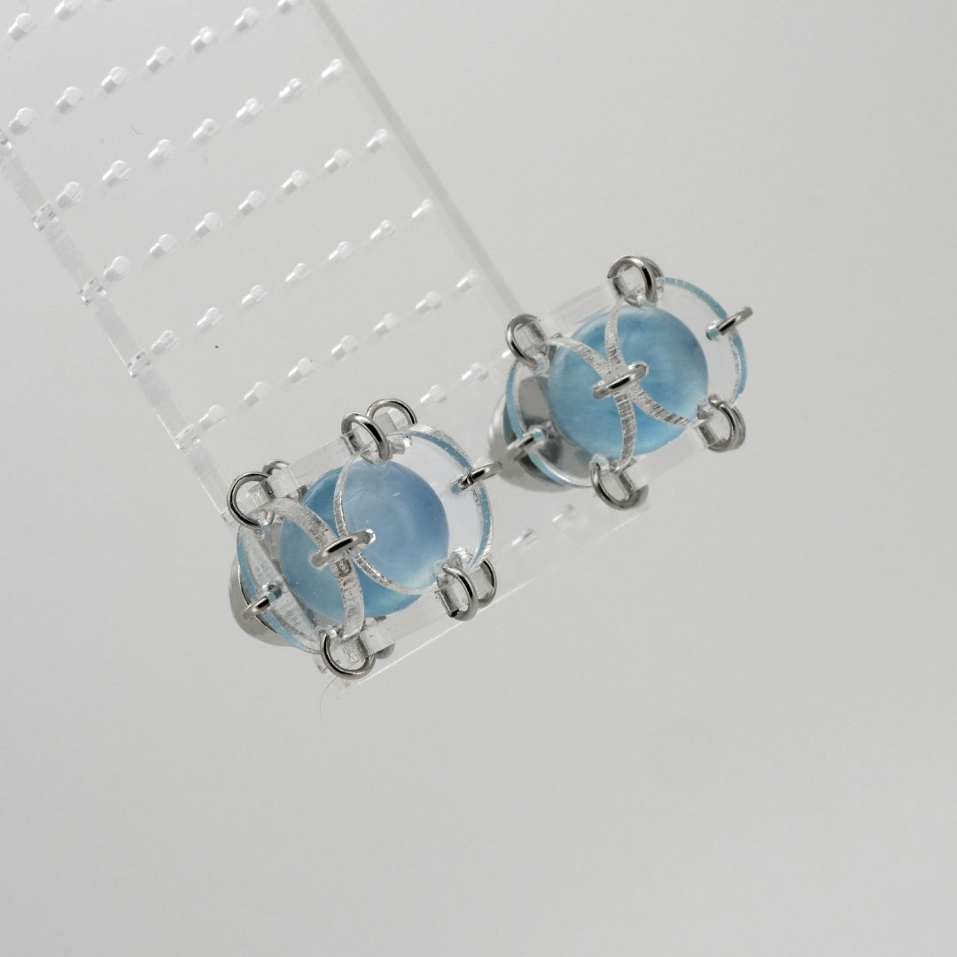 Each aquamarine, a drop of the sea, shifts from water-blue to turquoise — like sunlight filtering through a tide pool you're carrying on your lobe. It's a tiny, wearable fragment of the ocean's edge, where waves hush to a whisper. Move your head, and the stone glimmers.